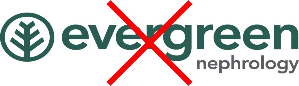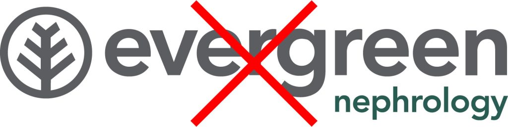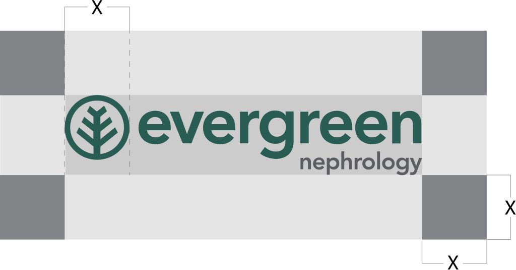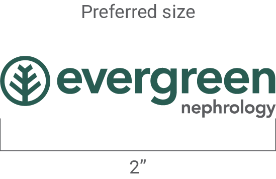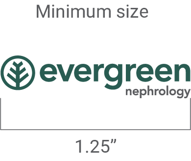 Evergreen Nephrology’s logo is a wordmark-based logo, the components of which share an established relationship, and the proportions are fixed as illustrated. The composition of the logo must never be altered or modified in any way and must consistently appear exactly as presented.